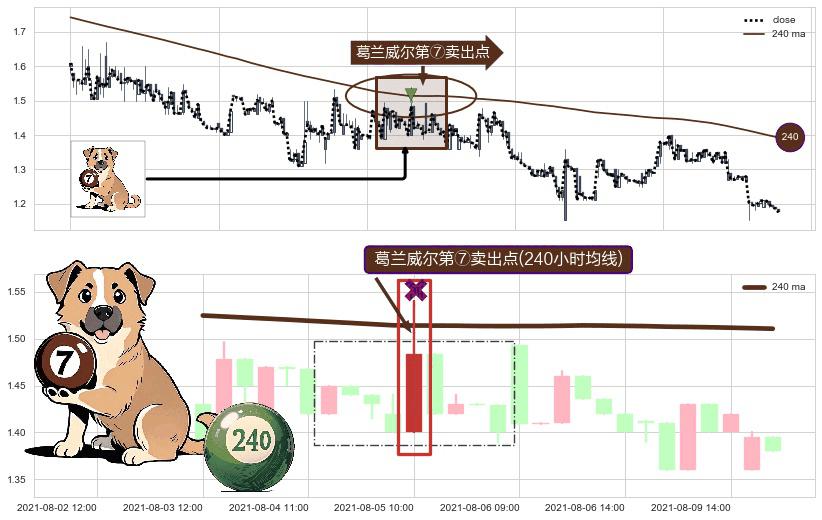 形态多维评估: ⚀ 2021-08-05 10:00:00-小时显现 葛兰威尔均线 240小时均线 第⑦卖出点 下降趋势的中继信号,后市看跌,卖出信号