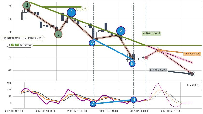 ➢ 预测:2021-07-20 12:00,【小幅反弹】稳定目前下跌趋势的前提下,预测价格:71.15