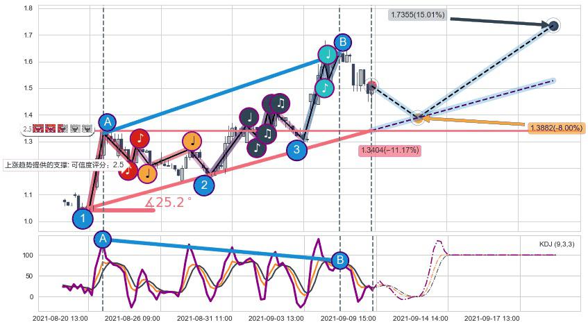➢ AI智能【预测第一最小【反转】目标价格】: 突破后1𝐇→(09-13:09: 1.3446 )
