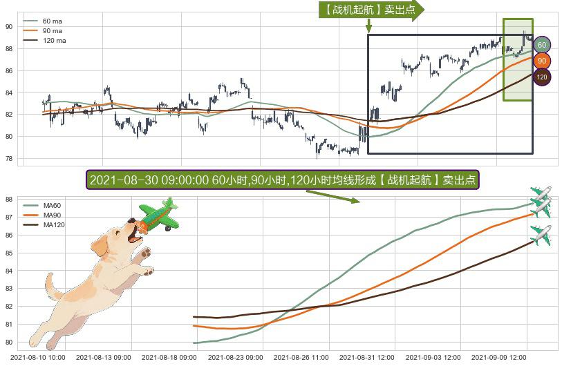 ⚀ 2021-08-17 15:00:00小时-2021-09-09 14:00:00小时显现 60小时-90小时-120小时均线 【战机起航】卖出点 看空信号,后市看跌,卖出