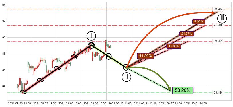 ➢ 循环浪继续向上【最低】位置(09-28:13, 89.47),匹配聚类样本比例28.45%, 可能性概率11.89%