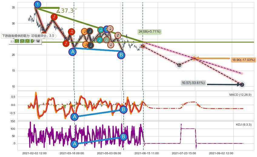➣ 【仅预测突破】最后价格:22.78与预测突破价格:27.46→【空间中等】后续最小【反转】第一目标价格→(06-21:14: 33.80 )