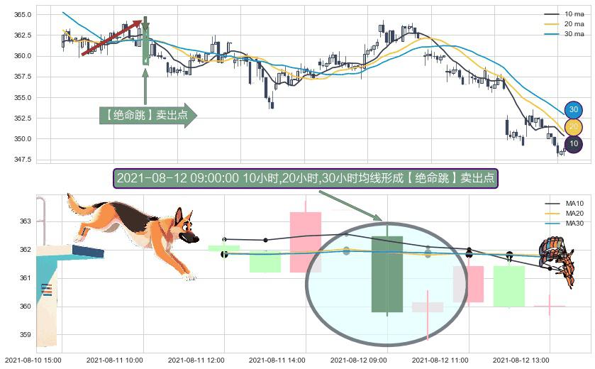 ⚀ 2021-08-12 09:00:00小时显现 10小时-20小时-30小时均线 【绝命跳】卖出点 看空信号,后市看跌,卖出