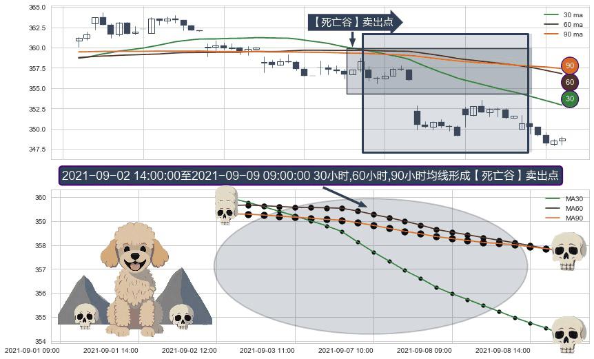 ⚀ 2021-09-03 09:00:00-小时至2021-09-09 09:00:00-小时显现 30小时-60小时-90小时均线 【死亡谷】卖出点 看空信号,后市看跌,卖出