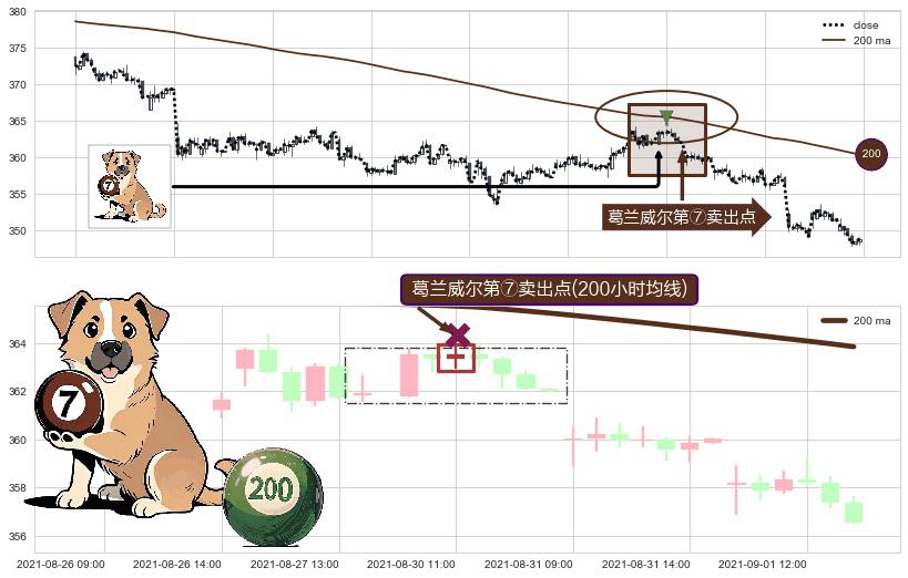 ⚀ 2021-08-30 11:00:00-小时显现 葛兰威尔均线 200小时均线 第⑦卖出点 下降趋势的中继信号,后市看跌,卖出信号