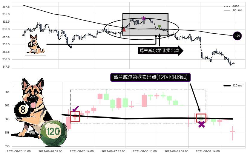 ⚀ 2021-08-31 11:00:00-小时显现 葛兰威尔均线 120小时均线 第⑧卖出点 下降趋势的中继信号,后市看跌,卖出信号