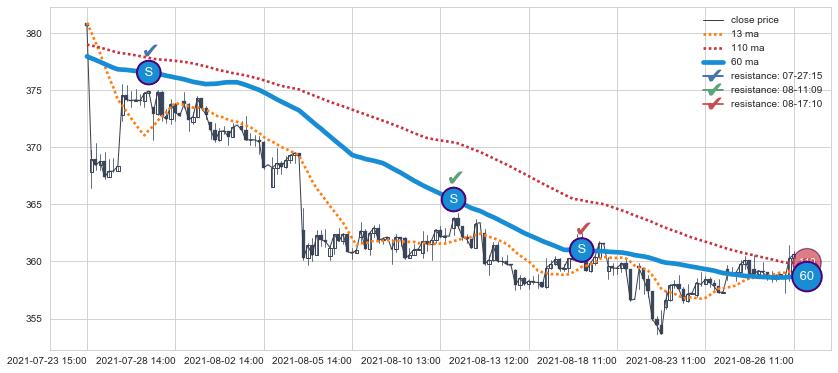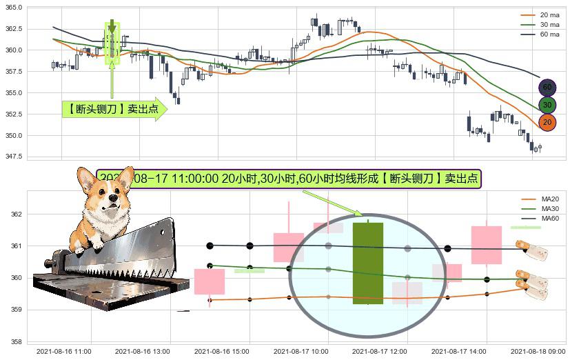 ⚀ 2021-08-17 11:00:00小时显现 20小时-30小时-60小时均线 【断头铡刀】卖出点 看空信号,后市看跌,卖出