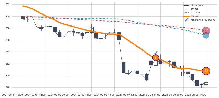 ⚂ 2021-08-26 11:00:00-小时均线向上突破,2021-08-31 11:00:00-小时重新下穿均线破位,均线阻力再次生效
