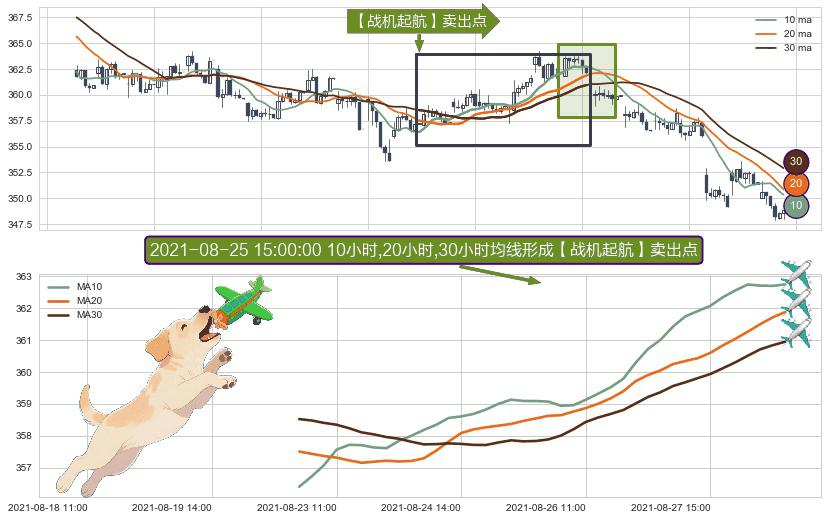 ⚀ 2021-08-20 15:00:00小时-2021-08-30 14:00:00小时显现 10小时-20小时-30小时均线 【战机起航】卖出点 看空信号,后市看跌,卖出