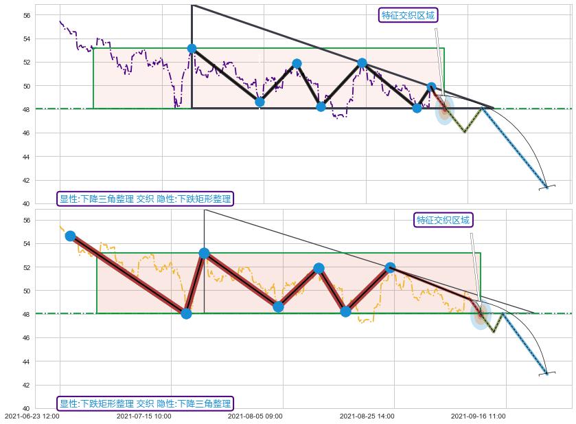 ♘ 在最后的下跌阶段2021-06-24 14:00至2021-08-24 11:00,存在 持续未破位的阻力位 ,阻力价格50.07,可信任强度80.60%,其距离最后价格49.21相差 +1.74%