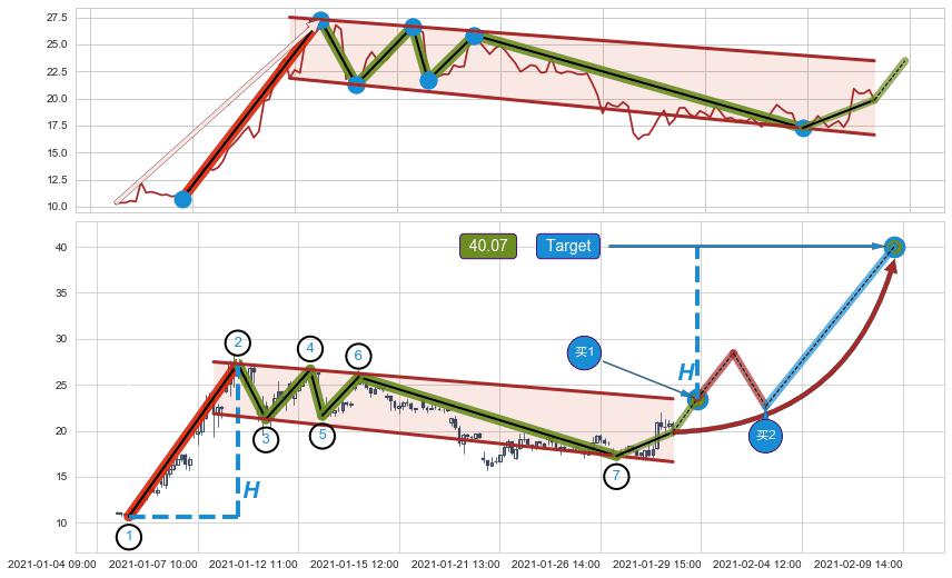➣ 最小中继整理涨幅→𝐇: 16.60 (𝐇旗杆的长度:旗杆起点→顶点)