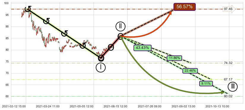 ➣ 大趋势循环浪继续向下概率43.43%