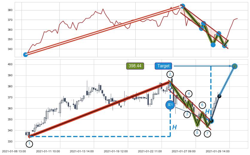 ➣ 最小中继整理涨幅→𝐇: 49.78 (𝐇旗杆的长度:旗杆起点→顶点)