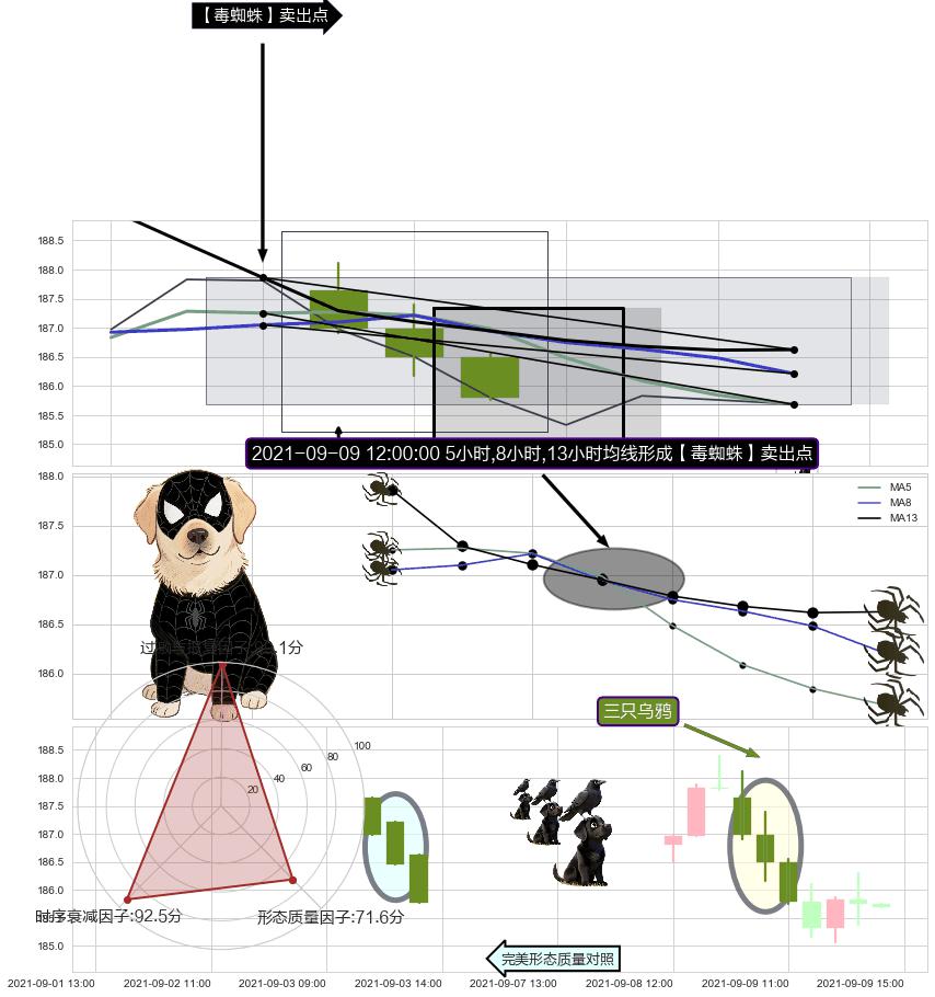 从2021-08-16 11:00至2021-09-09 15:00,共包含117个小时,阶段股价下跌-8.60%,阶段股价变动位移路程比: 1 : 3,下跌趋势角度: 26.4,2021-09-07 09:00向↘︎形成缺口,跳空下跌-2.80%˚