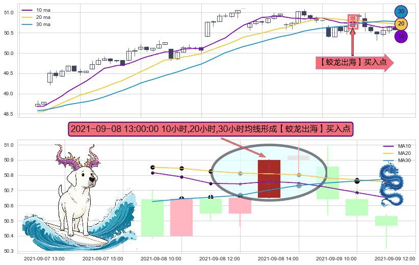 ⚀ 2021-09-08 13:00:00小时显现 10小时-20小时-30小时均线 【蛟龙出海】买入点 看多信号,后市看涨,买入
