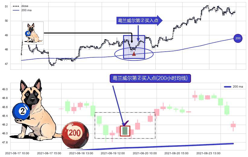 ⚀ 2021-08-19 12:00:00-小时显现 葛兰威尔均线 200小时均线 第②买入点 上升趋势的中继信号,后市看涨,买进信号