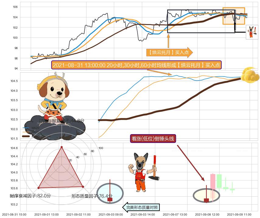 ➢ 收盘价(08-30:11: 104.98 )→回踩→第二根k线高点(08-30:09: 104.86 )