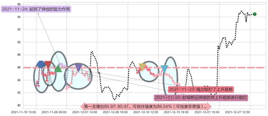 2021-11-22: 时域附近第一支撑位85.97持续的对上升趋势进行阻拦,有效放缓了上涨的速度。