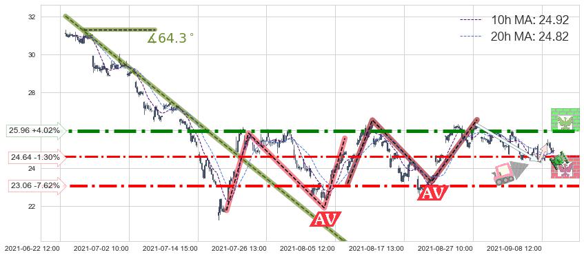 ♘ 支撑价格位24.64,可信任强度67.92%,距离最后交易2021-09-09 15:00形成的收盘价格24.96相差 -1.30%
