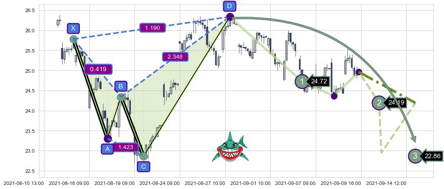 ➣ 已完成【鲨鱼】形态起点X: 08-12:14, 终点D: 08-27:12, 共70交易小时