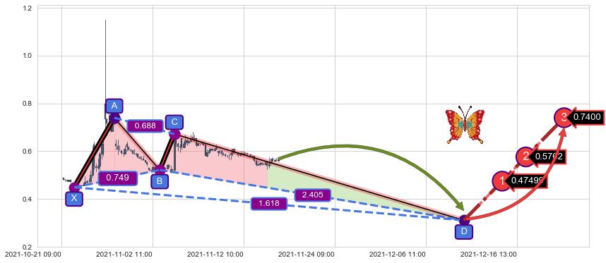 ➣ 未完成【蝴蝶】形态起点X: 10-22:10, 已到达C点: 11-04:11, 预测最终D点: 12-09:14, 共209交易小时