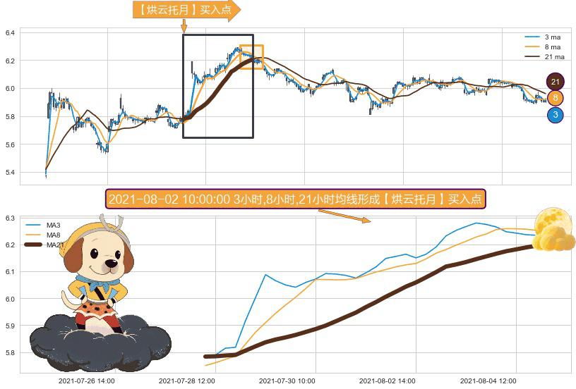 ⚀ 2021-07-28 11:00:00小时-2021-08-05 09:00:00小时显现 3小时-8小时-21小时均线 【烘云托月】买入点 看多信号,后市看涨,买入