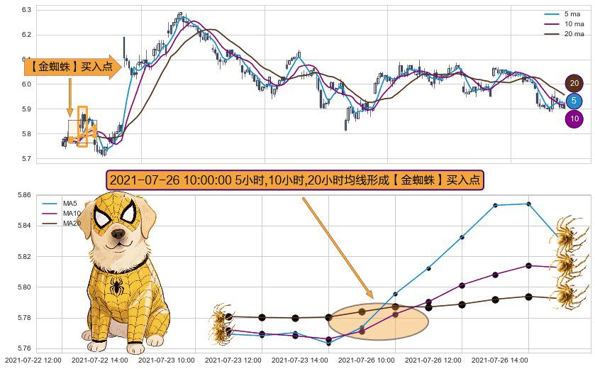 ⚀ 2021-07-26 10:00:00小时显现 5小时-10小时-20小时均线 【金蜘蛛】买入点 看多信号,后市看涨,买入