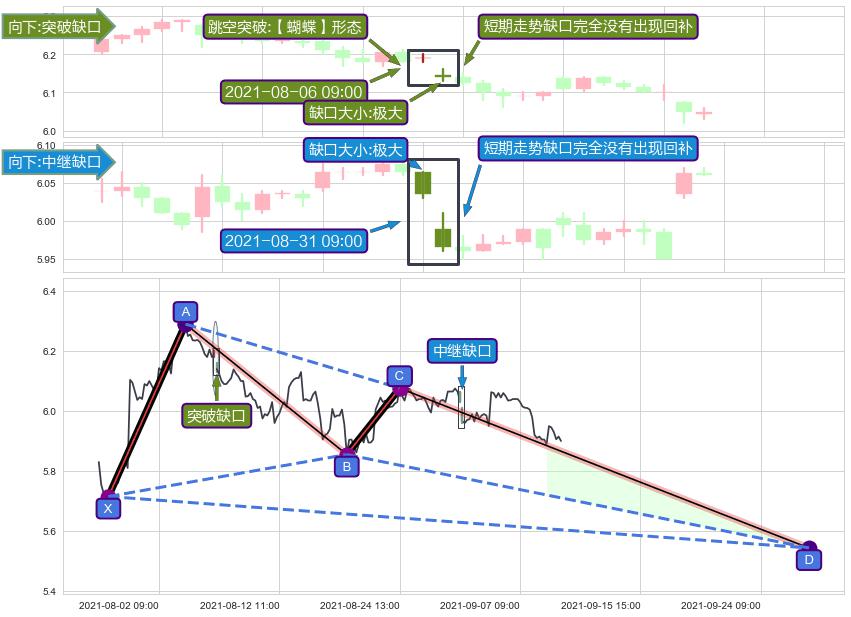 ➢ 2021-08-06 09:00形成:向下跳空【突破】缺口