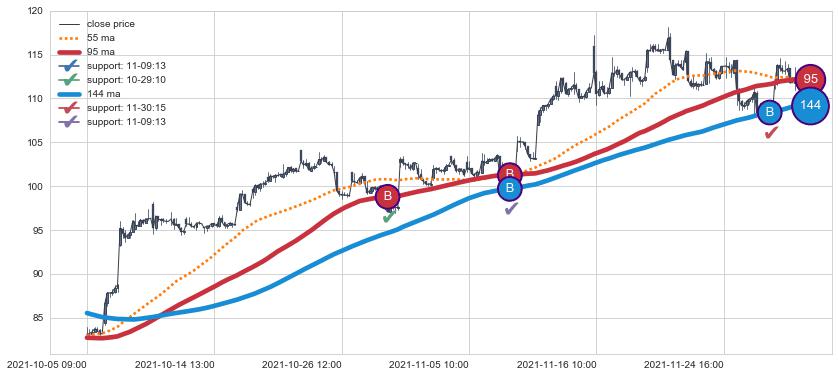 ➢ 发现最优均线组合: 55 , 95 , 144