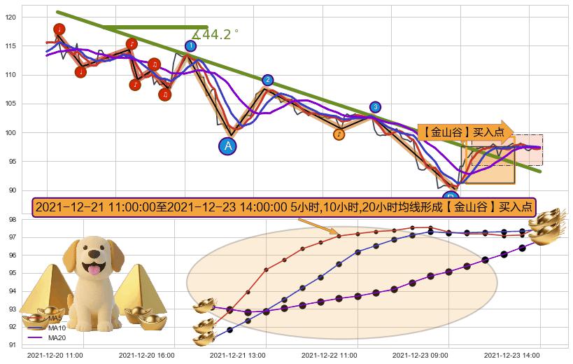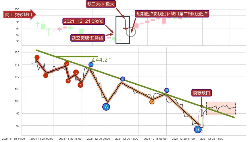 ➣ 2021-11-22 09:00-2021-12-20 16:00下跌趋势存在反转上涨[机会],其原下跌趋势的阻力位(93.23)已被突破[强支撑信号],原下跌趋势角度: 44.2˚