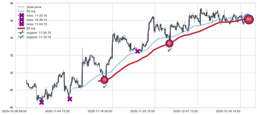 ⚂ 2021-07-09 10:00:00-小时均线向上突破,2021-07-15 12:00:00-小时重新下穿均线破位,均线阻力再次生效