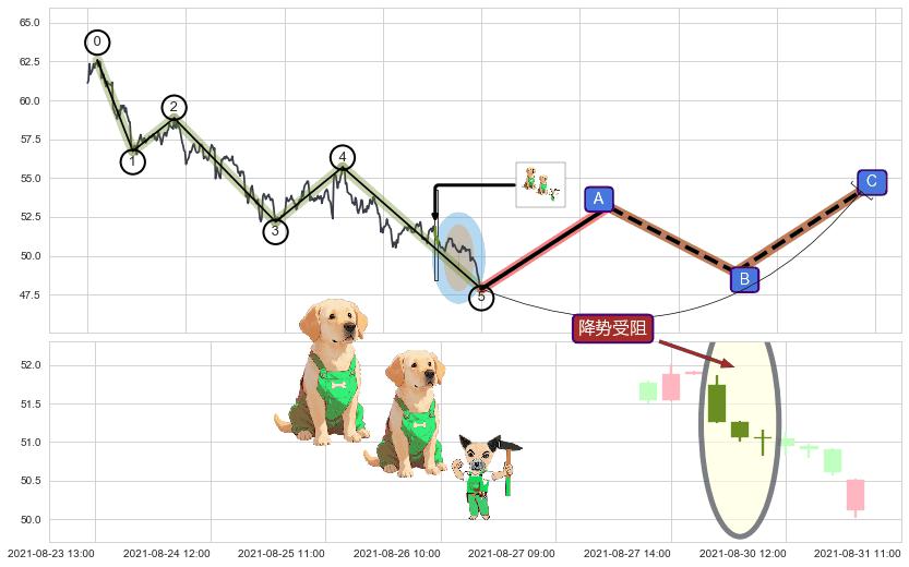 | 7 🅚:阳包阴(穿头破脚) ➕ 🌊:波浪理论猜想下跌浪5已形成,猜想后续形成abc反弹上涨(均值回复) ☞ 看多信号 ⇥ 【🅚线】交织【图形】⇥ 综合量化分数: 56 | > |