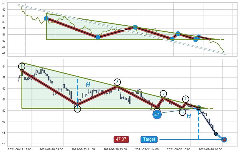 2021-08-26: 第一阻力位50.85有效抑制了下跌浪,成功阻止了价格的继续下跌。