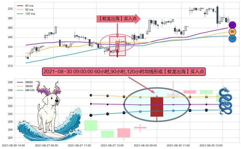 ⚀ 2021-08-30 09:00:00小时显现 60小时-90小时-120小时均线 【蛟龙出海】买入点 看多信号,后市看涨,买入
