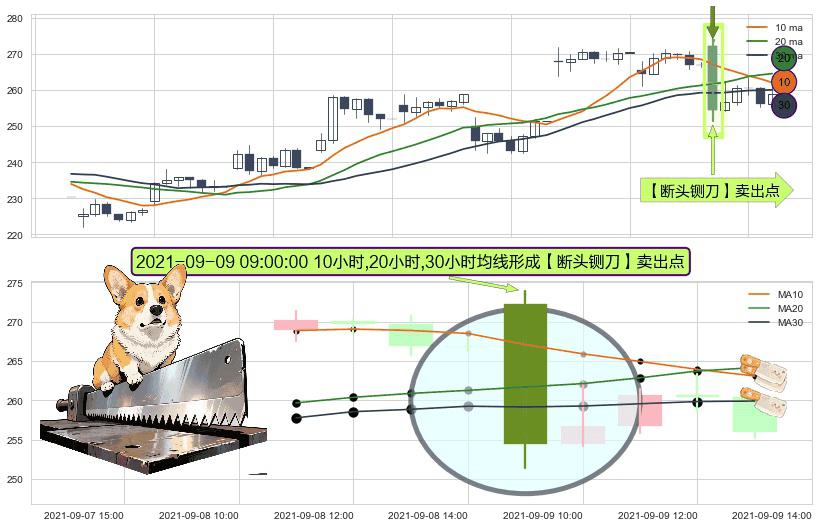 ⚀ 2021-09-09 09:00:00小时显现 10小时-20小时-30小时均线 【断头铡刀】卖出点 看空信号,后市看跌,卖出