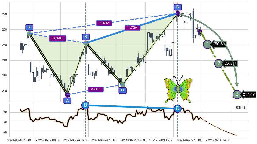 ➢ 谐波价格D点比B点高 ⤴,【RSI】指标D点比B点低 ⤵️