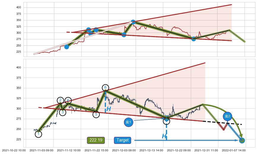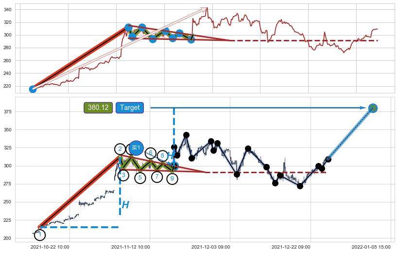 ➣ 【仅预测突破】最后价格:309.45与预测突破价格:276.30→【空间临近】后续最小【反转】第一目标价格→(01-07:14: 222.19 )