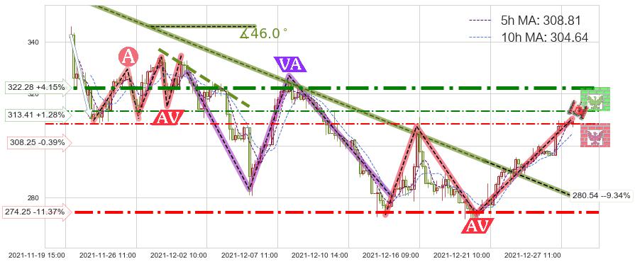 ♘ 阻力价格位322.28,可信任强度94.39%,距离最后交易2021-12-27 15:00形成的收盘价格309.45相差 +4.15%