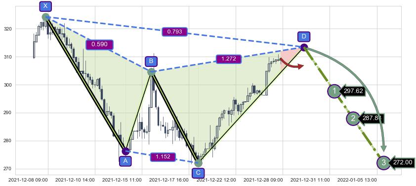 ➣ D点拟合预测价格313.45,距离最后交易收盘价格309.45相差 +1.29%