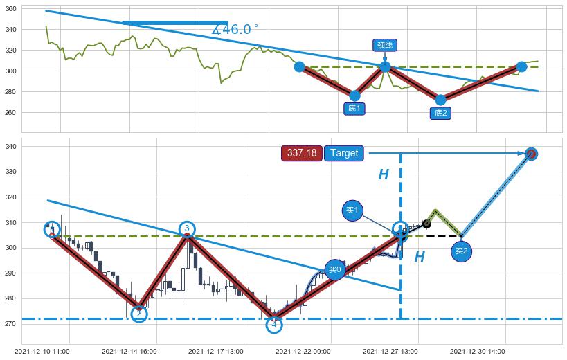 ➣ AI预测: 假定反转启动后, 第❶目标位置(12-31:13, 297.62)