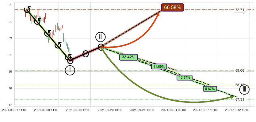 ➣ 【仅预测突破】最后价格:69.66与预测突破价格:69.53→【空间中等】后续最小【反转】第一目标价格→(09-28:13: 66.50 )