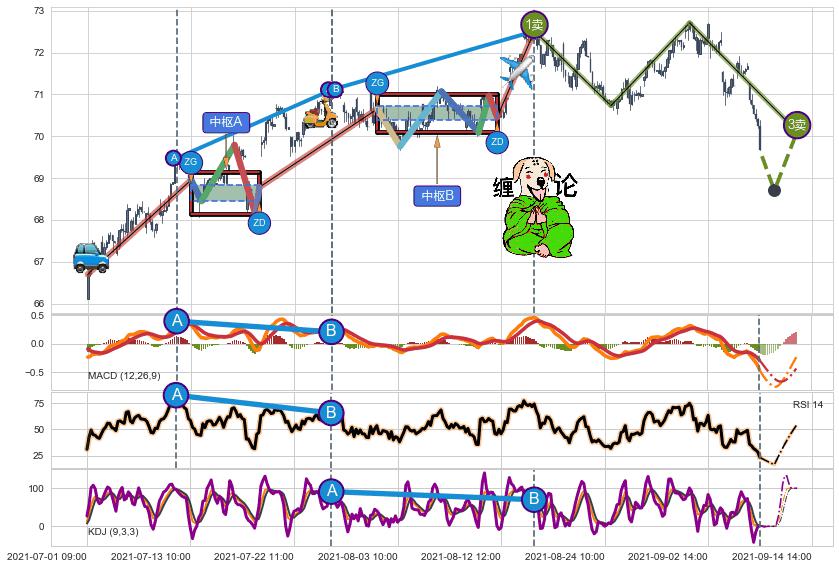 ➢ 【已完成】缠论 起点:07-01:09,完成第1中枢A,完成第2中枢B,终点:08-16:14,缠论共217交易小时