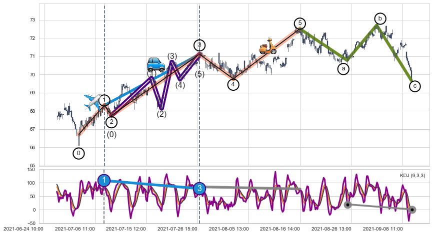 ➣ a,c调整浪KDJ走势未出现明显背离