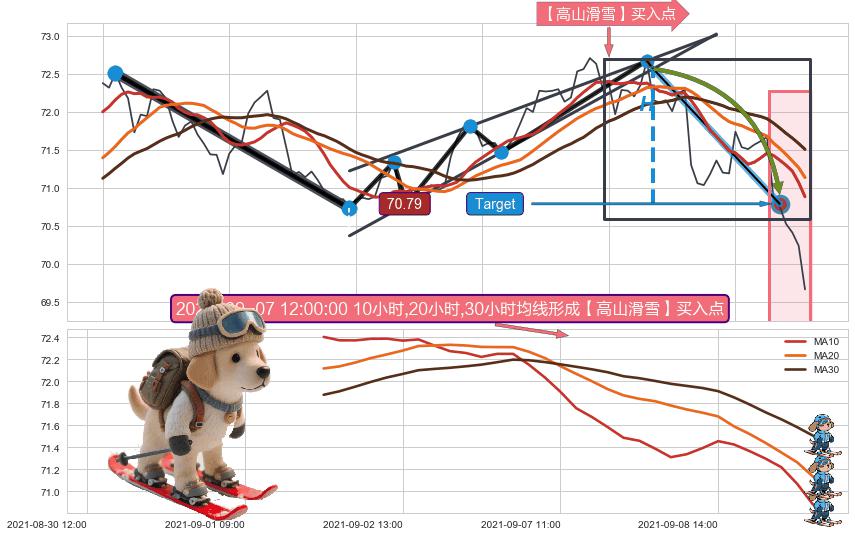 ♞ 5小时均线:70.32,10小时均线:70.88→ 快线<慢线
