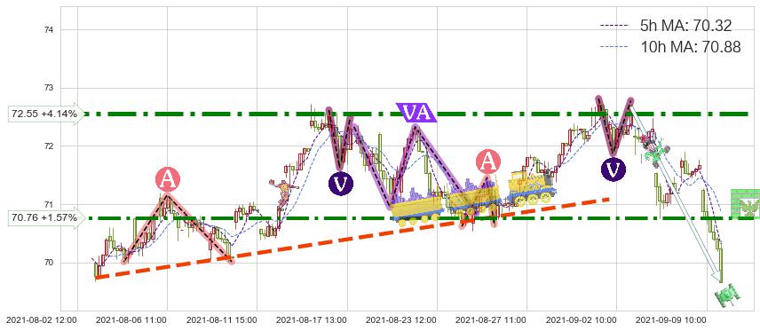 ➣ 【已达成】最小【整理】第一目标价格→(09-09:10: 70.79 ), 后续继续【整理】下跌动力微弱,下跌较小