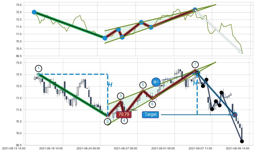 ➢ 最小中继整理跌幅→𝐇: 1.7800 (𝐇楔型旗杆的长度:楔型起点→顶点)