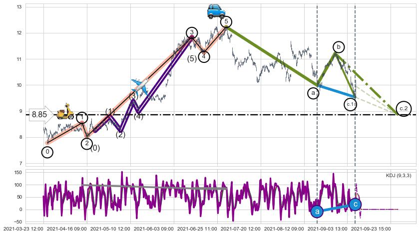 ➣ c.1: 当前c浪回调位置(09-09:13, 9.54),仍然有回调空间