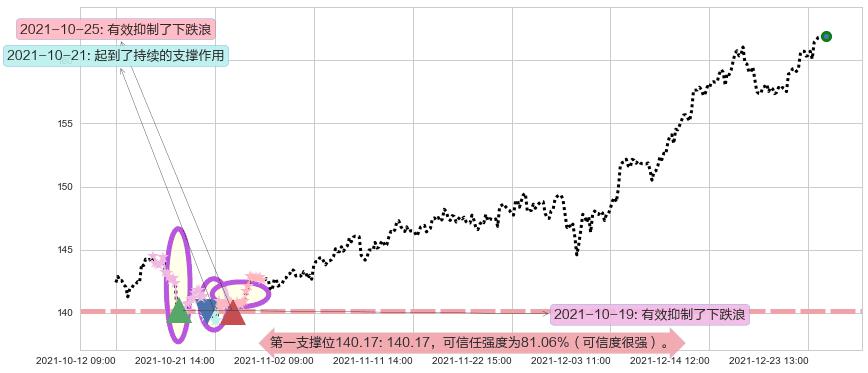 ♞ 第一支撑位140.17价格为140.17,其通过量化计算出的可信任强度为81.06%(可信度很强)。