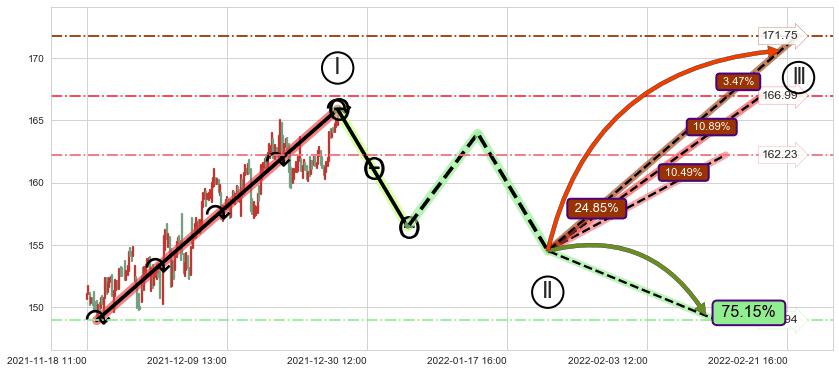 ➣ 循环浪继续向上【平均值】位置(02-17:14, 166.99),匹配聚类样本比例43.84%, 可能性概率10.89%