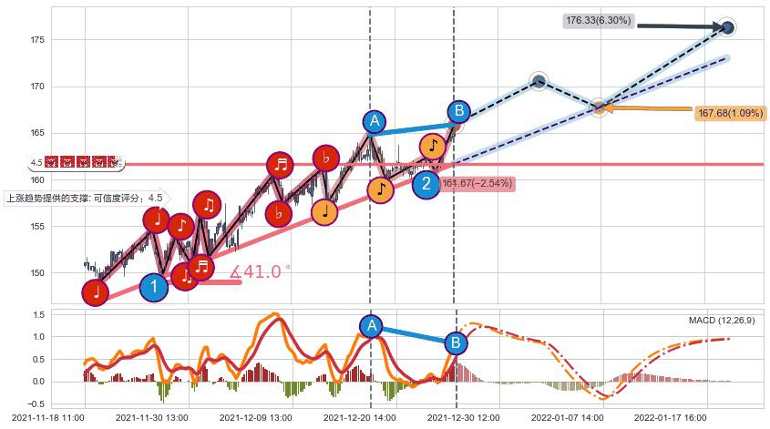 ➣ D点拟合预测价格166.75,距离最后交易收盘价格165.88相差 +0.52%